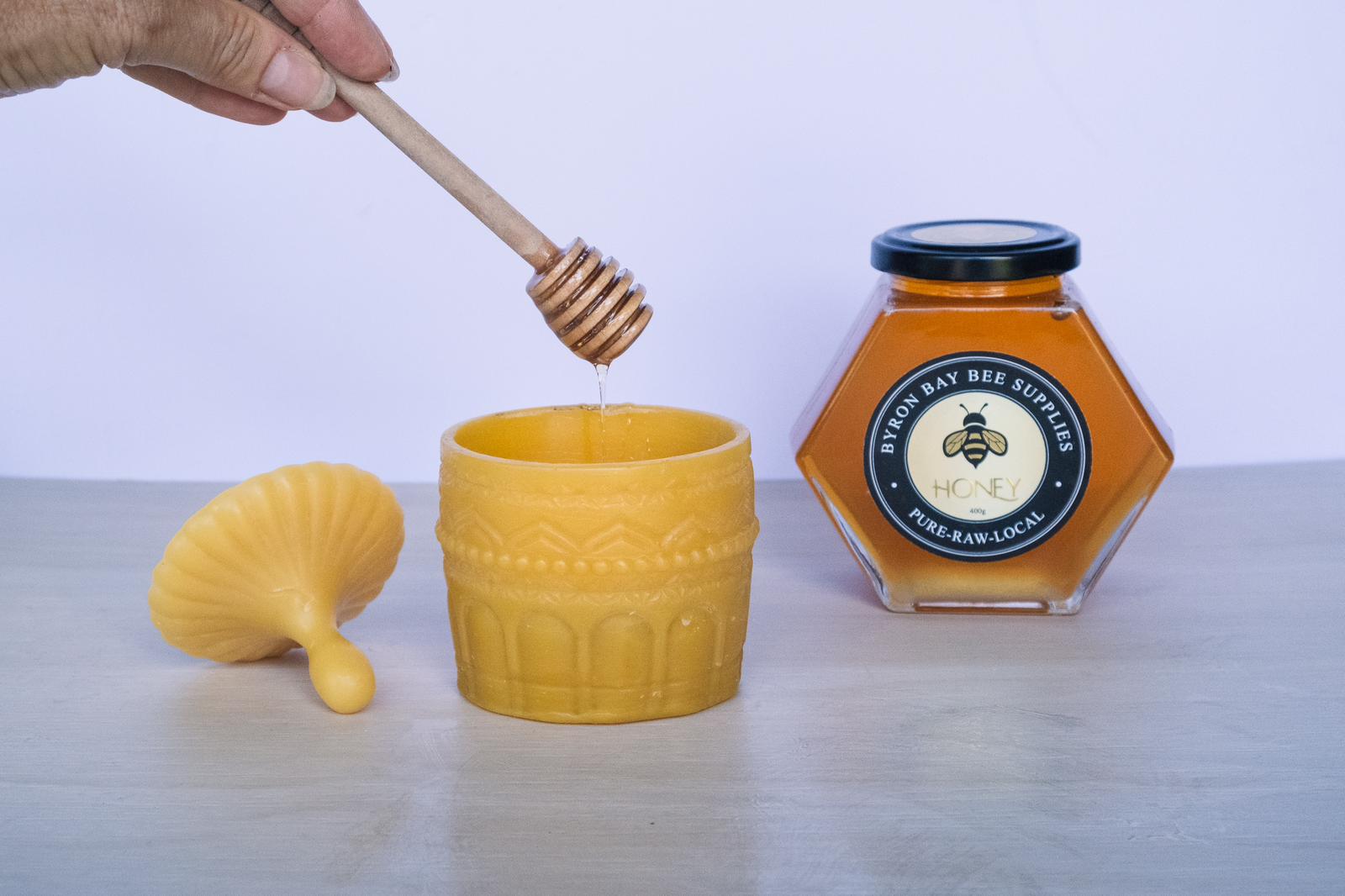 Vintage in design this gorgeous honey pot has been created from pure beeswax. It takes about a million flowers to make the honey in this beeswax pot.